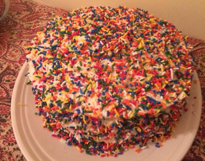 Boondi Ladoo Mawa Cake (eggless milk fudge cake co Boondi Ladoo Mawa Cake (eggless milk fudge cake covered with sprinkles)
