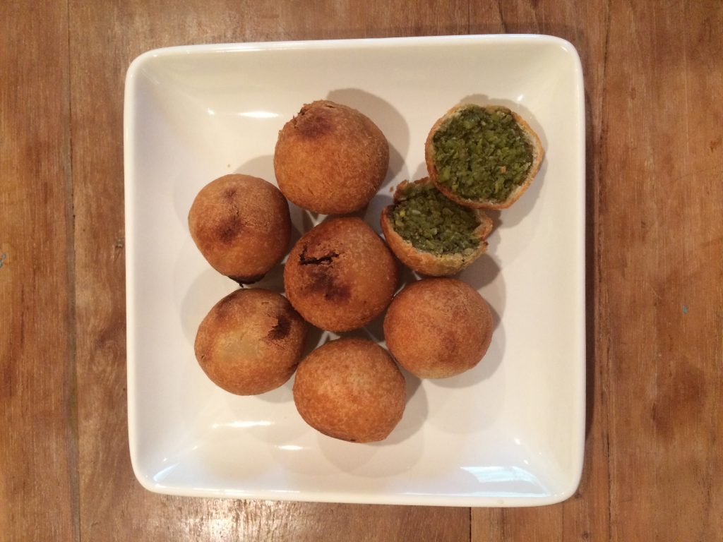 - Heat olive oil in a frying pan or a wok on a medium high heat until shimmering, 2 to 3 minutes. Add mustard seeds and let them sizzle. Lower heat to low and add sesame seeds. Add asafetida, turmeric and let spices cook for 30 seconds. Add minced lilva and stir to combine with spices. Add mashed potato, rest of the ingredients and stir to combine everything. Cover pan or wok and let filling cook for 4 to 5 minutes. Let filling cool for 10 to 15 minutes.