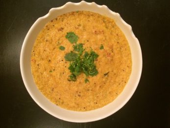 - Remove from the heat and garnished with remaining coconut and cilantro. Serve warm as a side dish or with Puri. Serve lime quarters on the side.