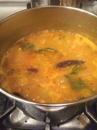 1. Rinse channa dal , transfer to a soup pot or a Dutch oven or a pressure cooker and add 1 ½ cups water. Cover the pot and let dal soak for 2 to 3 hours or until dal is soft (Soaking is optional).
